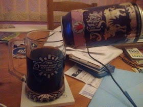 The black aspect of the glass is not quite Vanta, it does not suck in the surrounding light like some vast black hole so much as it sits and draws light through to create a kind of murky chocolate brown in the right light and a smooth blackness like a peat bog in others. All the better to kind of blend in with the shadows like the subject of the Rasmus's breakout hit back whenever it was that they were popular. It exudes a milk stout feel, comfortable and warm and slightly introverted, a good ale that doesn't want to get rusty lips. In the mouth it is soft and feels like a marshmallow would if it weren't made of sugar rushes and death. Strangely light as it opens, slipping past into the middle like a thief to lay hands on the tongue and gently strangle it so as to make off with your heart from the vault. Slightly smoky around the edges with a deep cooling milk centre, the consistency of the soft centres in nice truffles but less chocolate and more of the cream. Nothing harsh or bitter about this one, no dark chocolate to match the kind of primeval dark of the colour here, just the soft and warming milkiness that would remind you of being a baby were it not for the fact that it doesn't.
